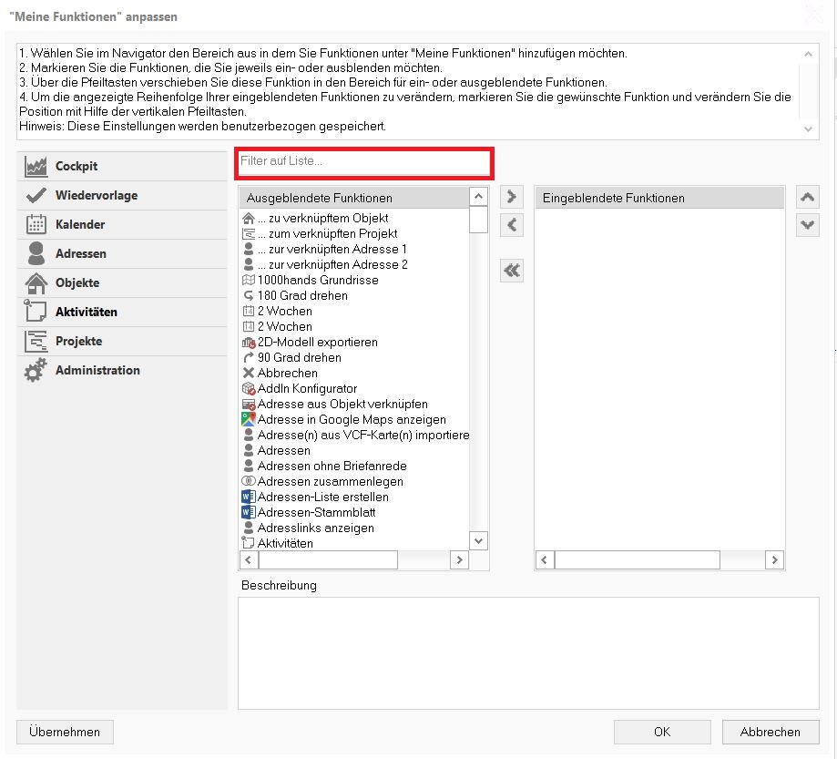 Es öffnet sich ein Fenster. Nun klicken Sie auf „Filter auf Liste“ und geben das Stichwort „Fenster“ ein.