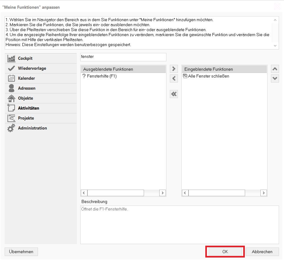 „Alle Fenster schließen“ befindet sich nun auf der rechten Seite. Jetzt müssen Sie nur noch auf „OK“ klicken.