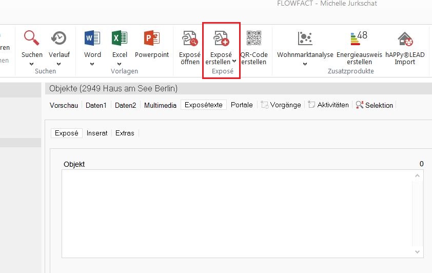 Wenn Sie alles ausgefüllt haben, klicken Sie oben in der Leiste auf „Expose erstellen“.
