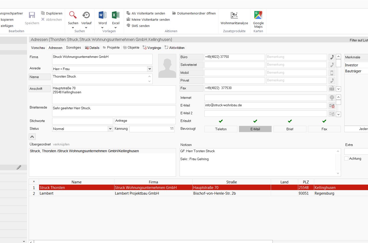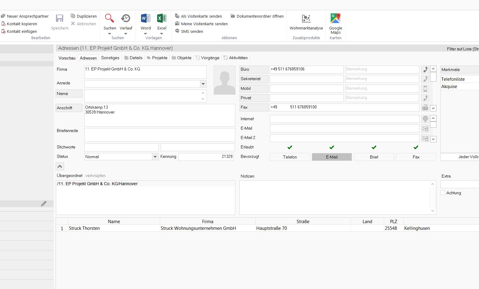 Wenn die gewünschte Adresse mit den bestimmten Kriterien gesucht wurde, sieht das wie folgt aus: