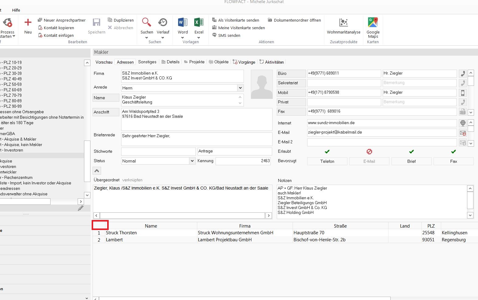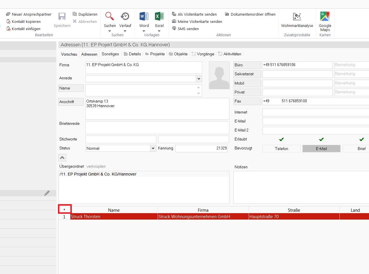 Diese erste Adresse soll trotz erneuter Suche in meiner Liste weiterhin angezeigt bleiben. Dazu klickt man auf das Feld links in der Ecke mit der rechten Maustaste.