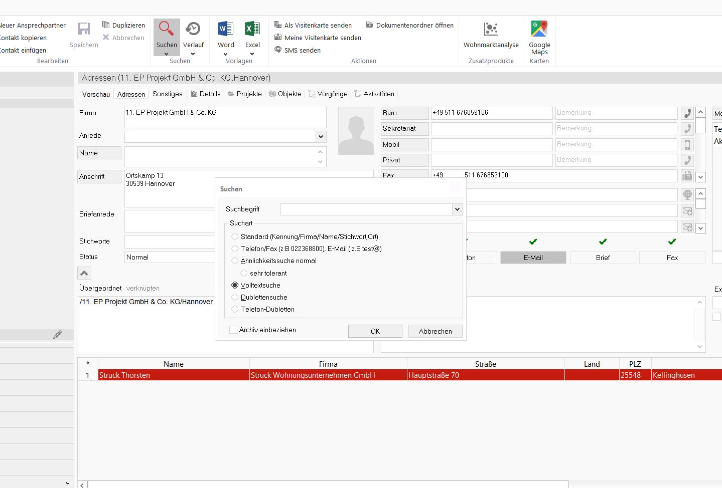 Die gesuchte Adresse taucht in Ihrer Liste auf: