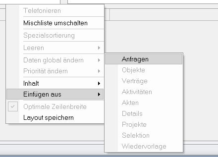 wechseln und ggf. bestehende Adressliste entfernen. Mit rechter Maustaste in leeres Listenfeld klicken und Einfügen aus -> Anfrage auswählen.
