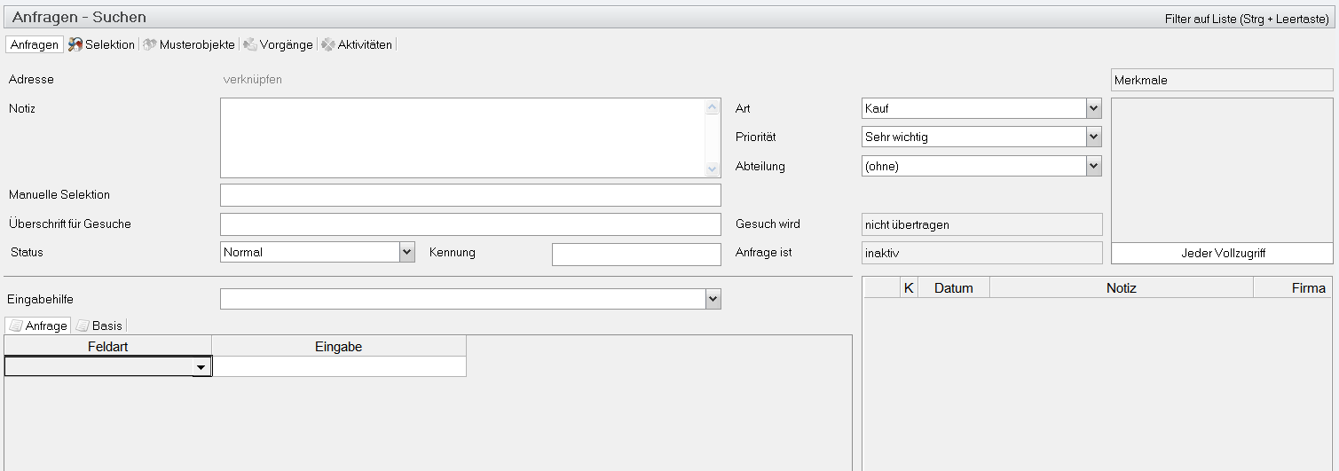 klicken. Es ist egal, ob man gerade in einer Adresse mit einer aktiven Anfrage ist oder einer Adresse ohne Anfrage.