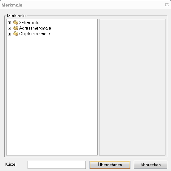 Wenn in den Feldarten alle Eingaben erfolgt sind, werden nun die Merkmale ausgewählt.