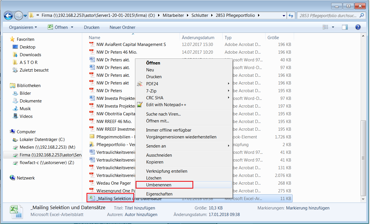 Zu guter Letzt klicken Sie auf die Datei mit der rechten Maustaste und benennen Sie die Datei um in: Kennnunmer_Mailing Selektion und Datensätze z.B. 2853_Mailing Selektion und Datensätze.