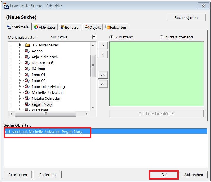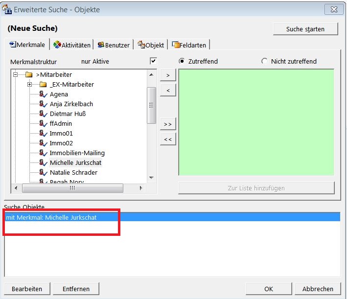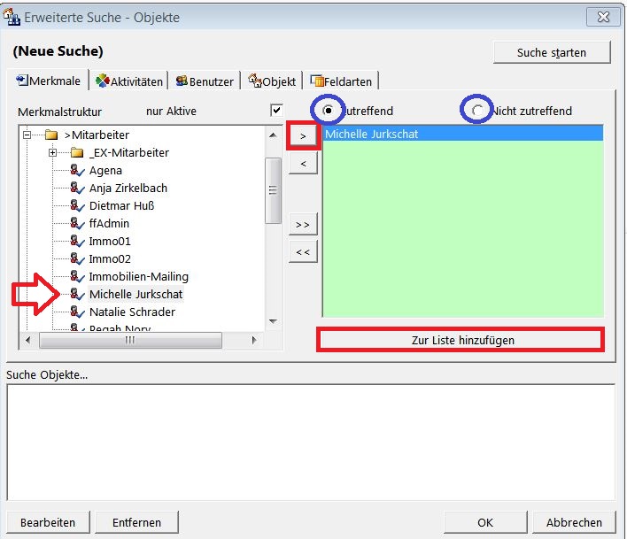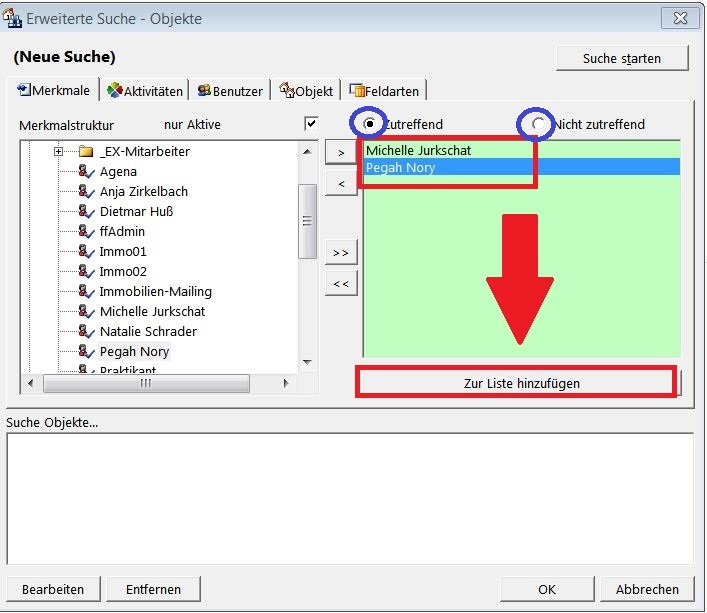 Fügen Sie bitte die Kriterien nun zusammen über den Button „Zur Liste hinzufügen“ zur Suche hinzu.